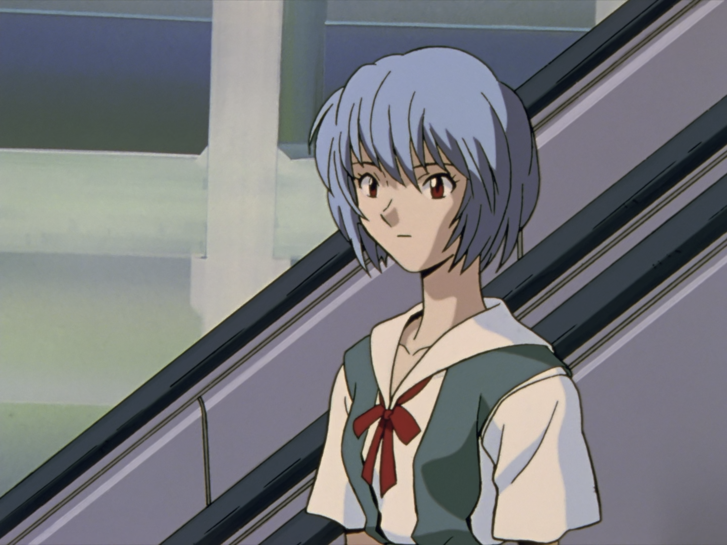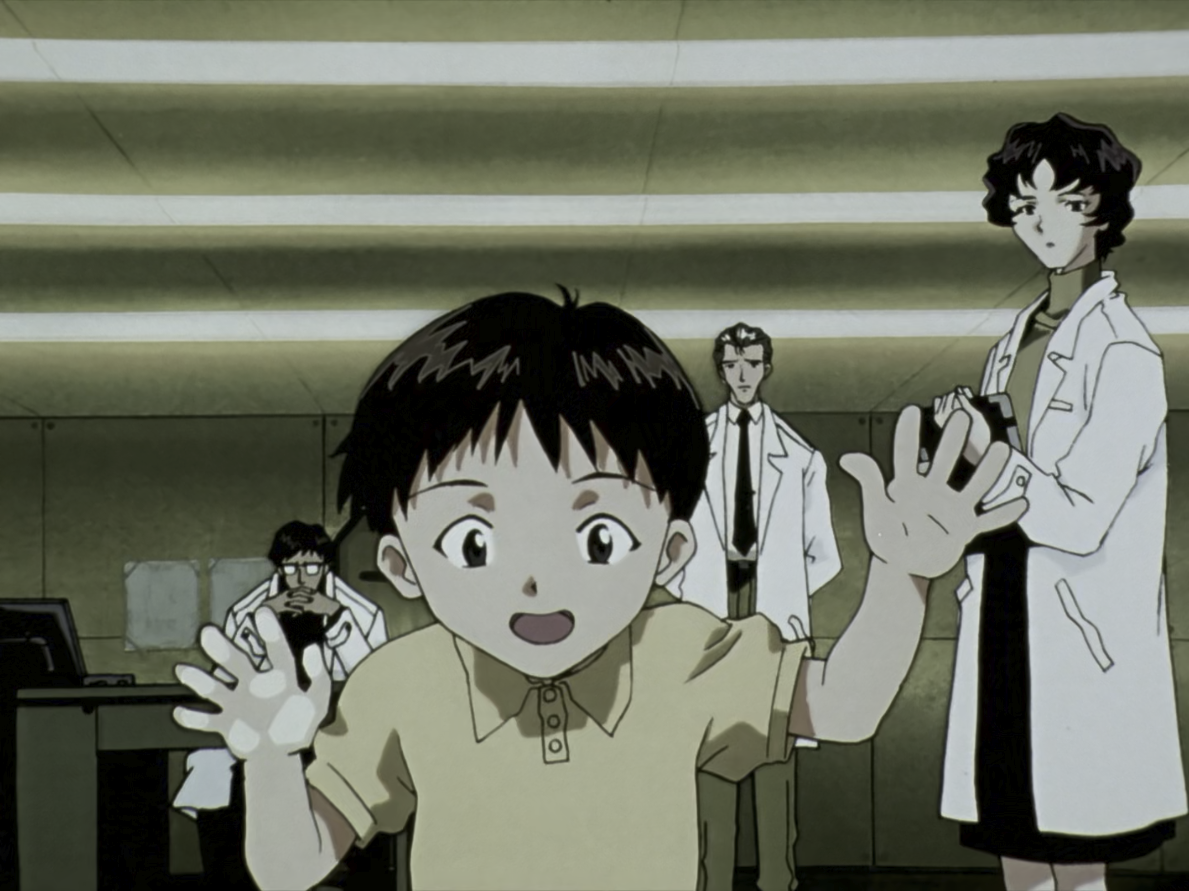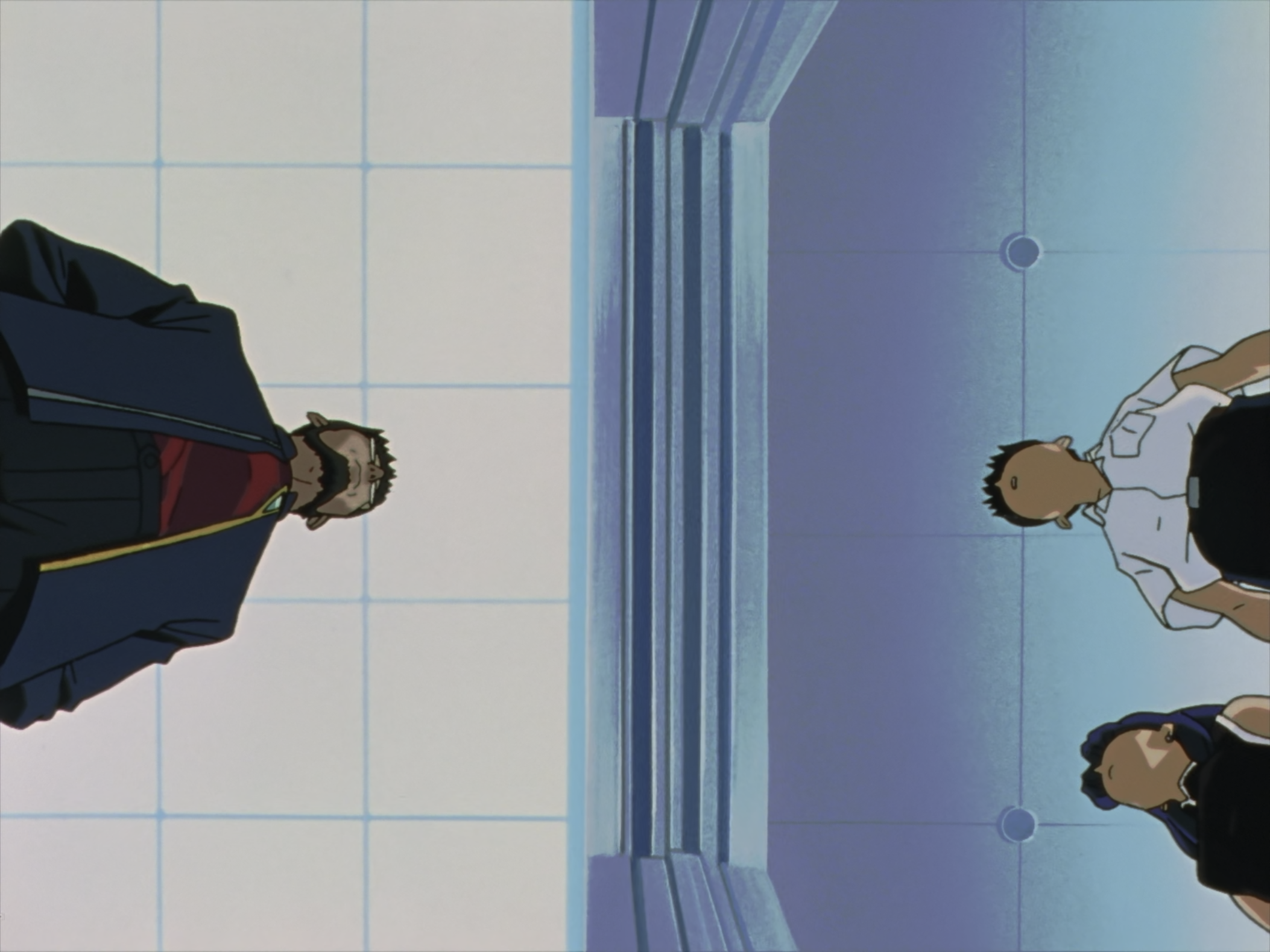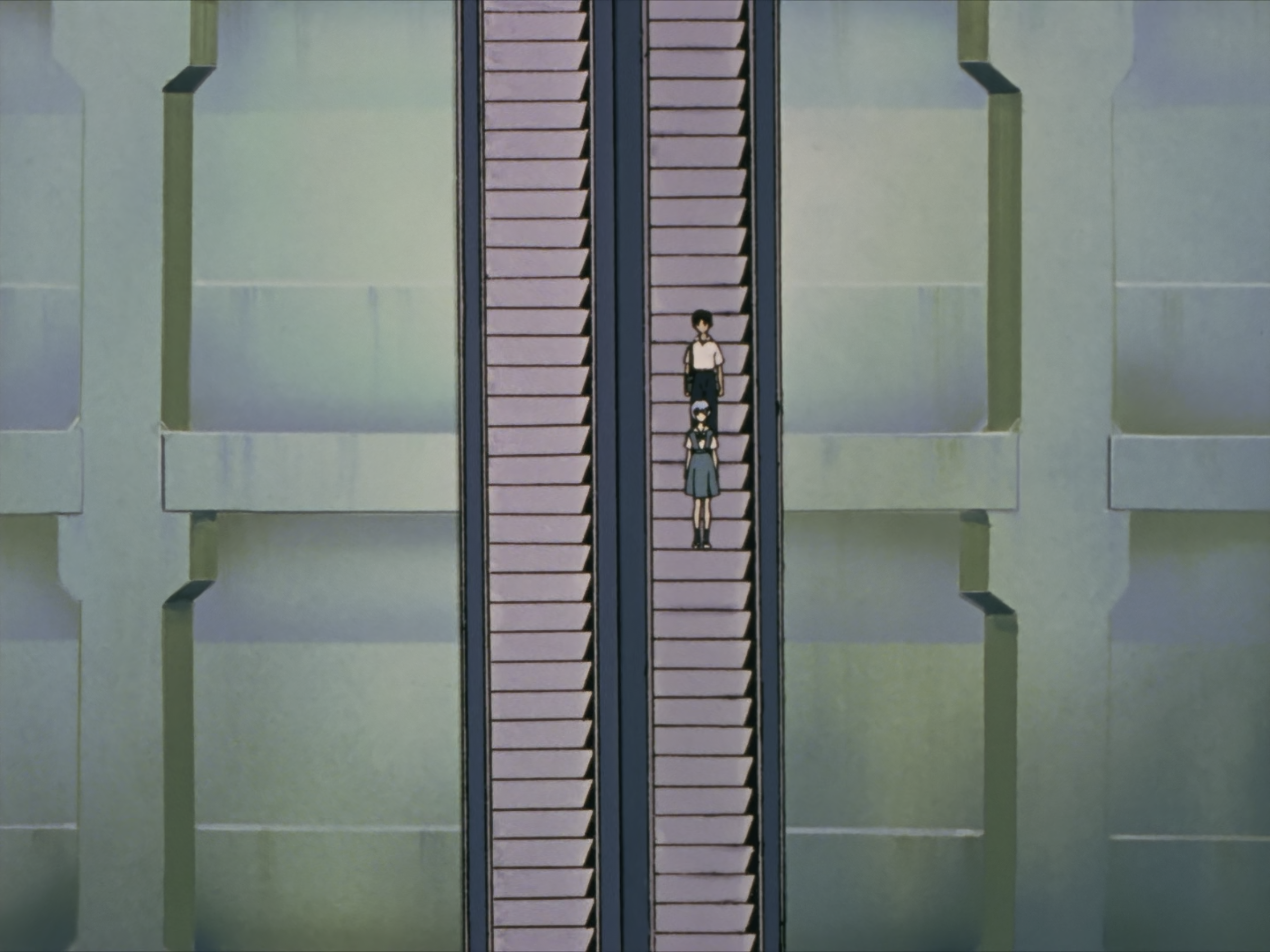 很喜欢这样的转场方式,出隧道一阵白光闪过,然后转换场景。到后面的真嗣三人电梯里也很经典