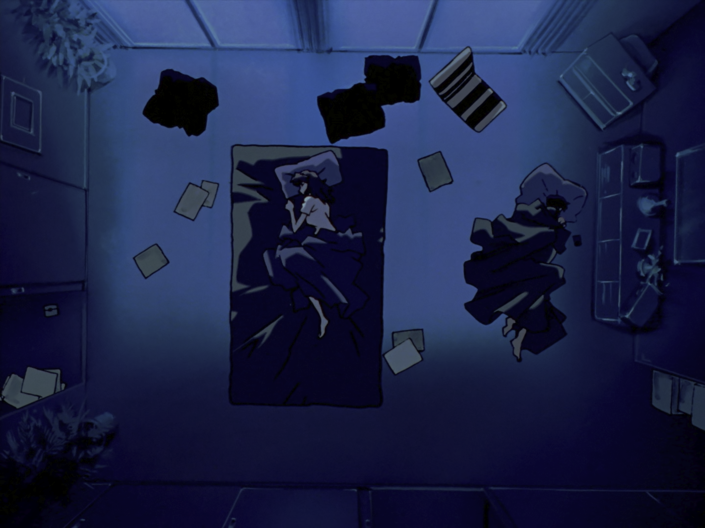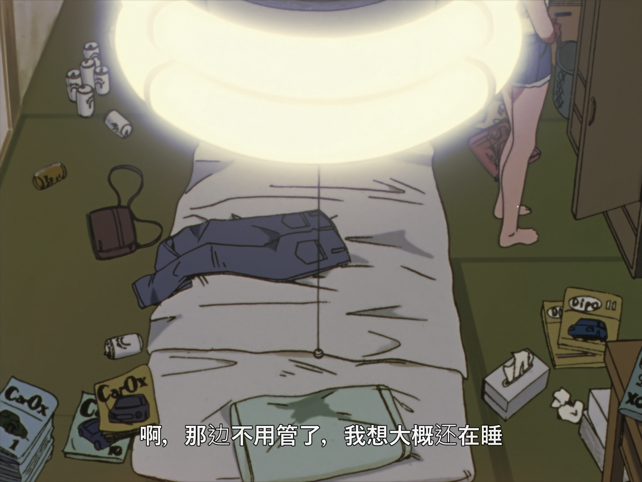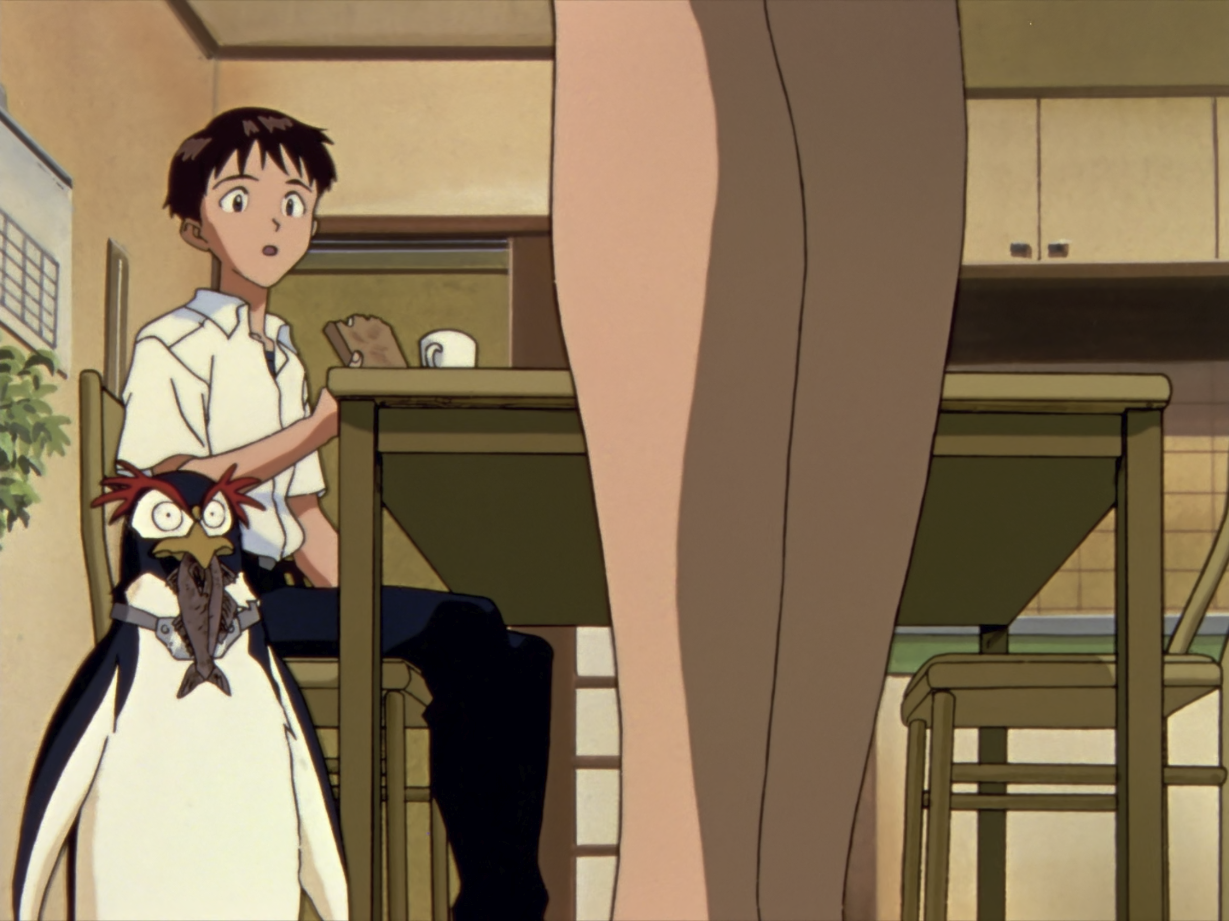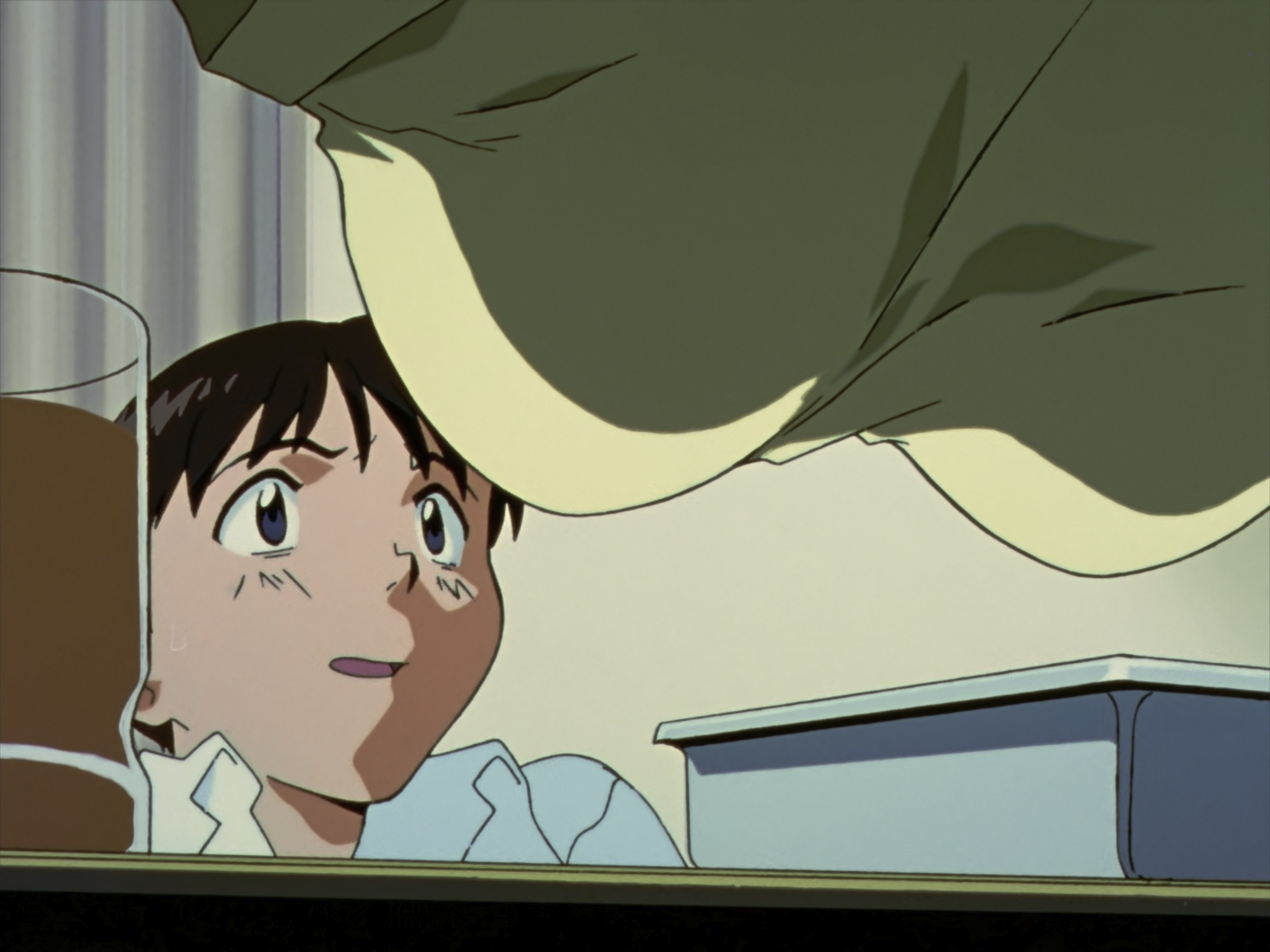 这个视角也很有意思,切换到真嗣场景的时候有低沉的嗡嗡声,应该是冰箱运行的声音,美里场景时是没有这个声音的。