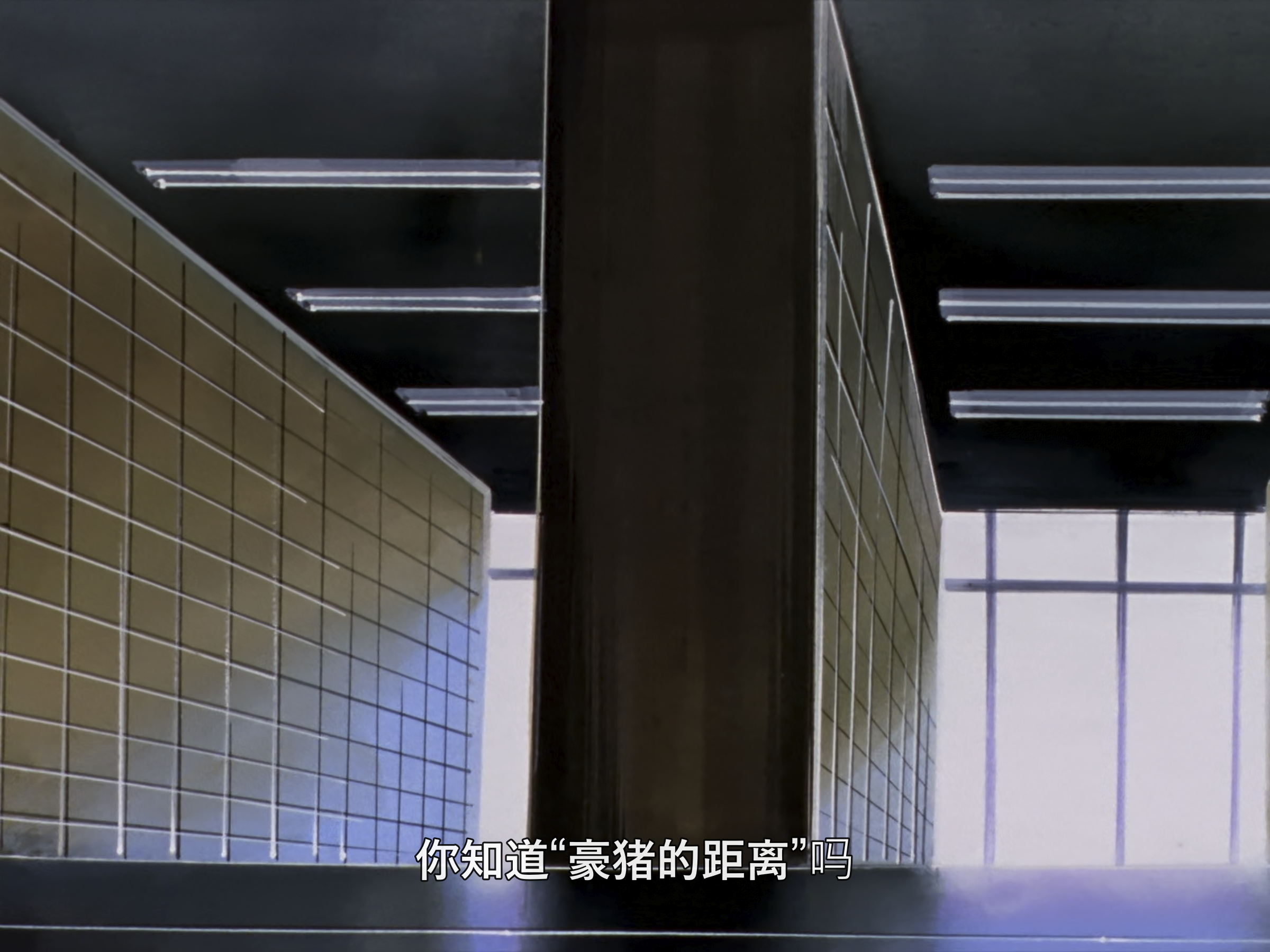 “豪猪虽然想将自己的温暖传给对方,但是身体只要靠的越近,全身的刺就会使对方受伤,人类也是这样,现在的真嗣也因为内心某处害怕伤痛,而变得胆小了吧。”