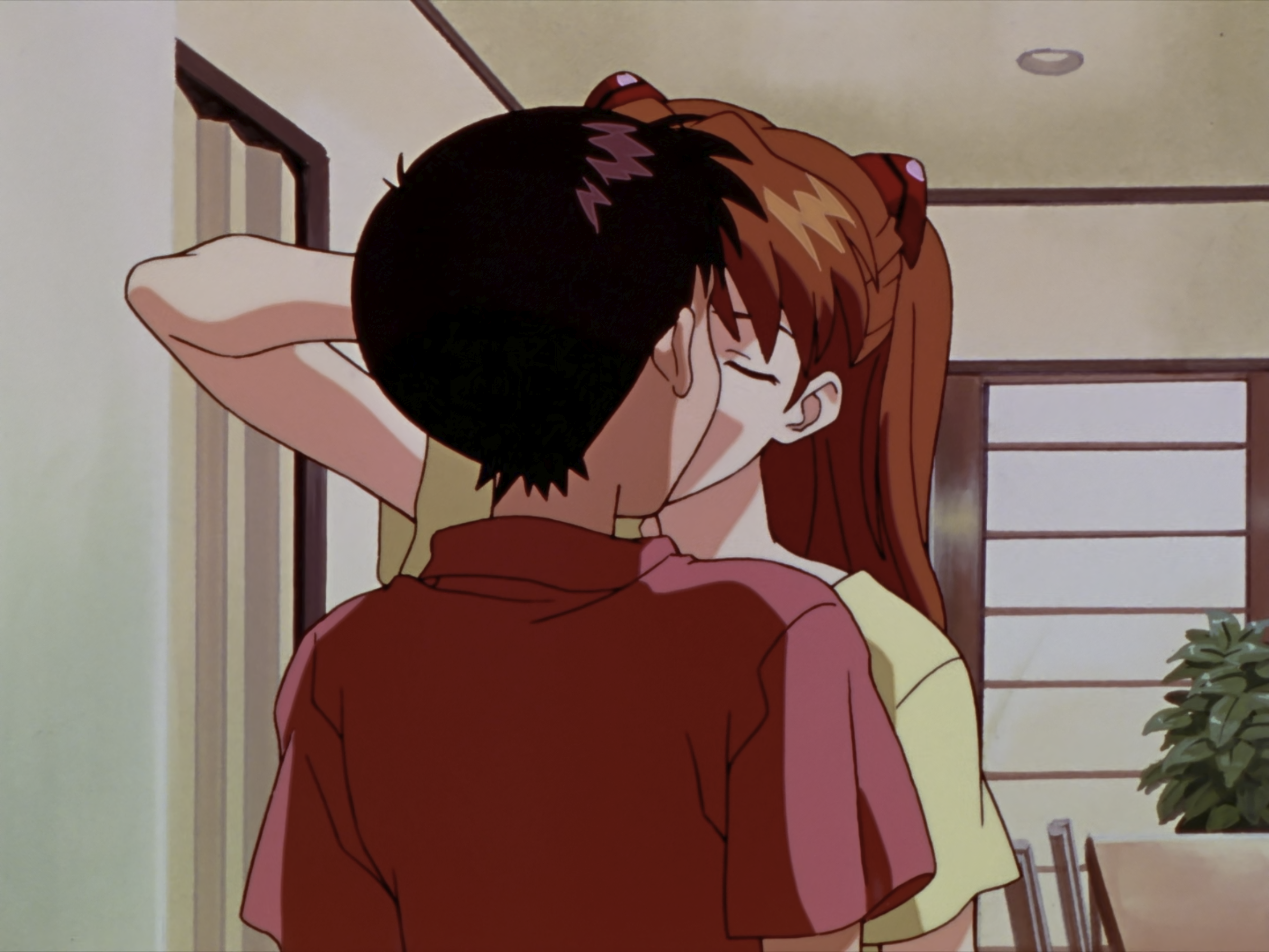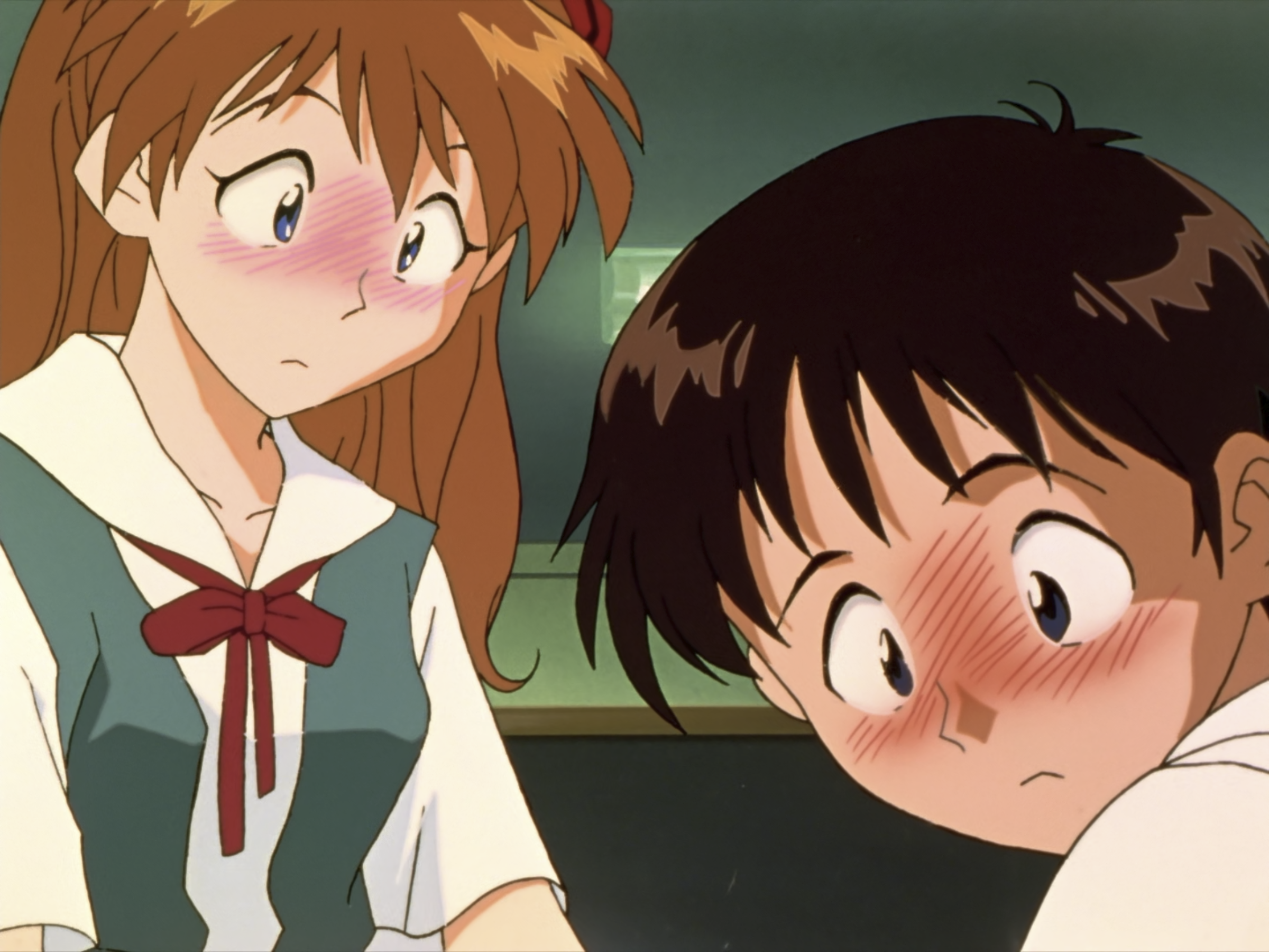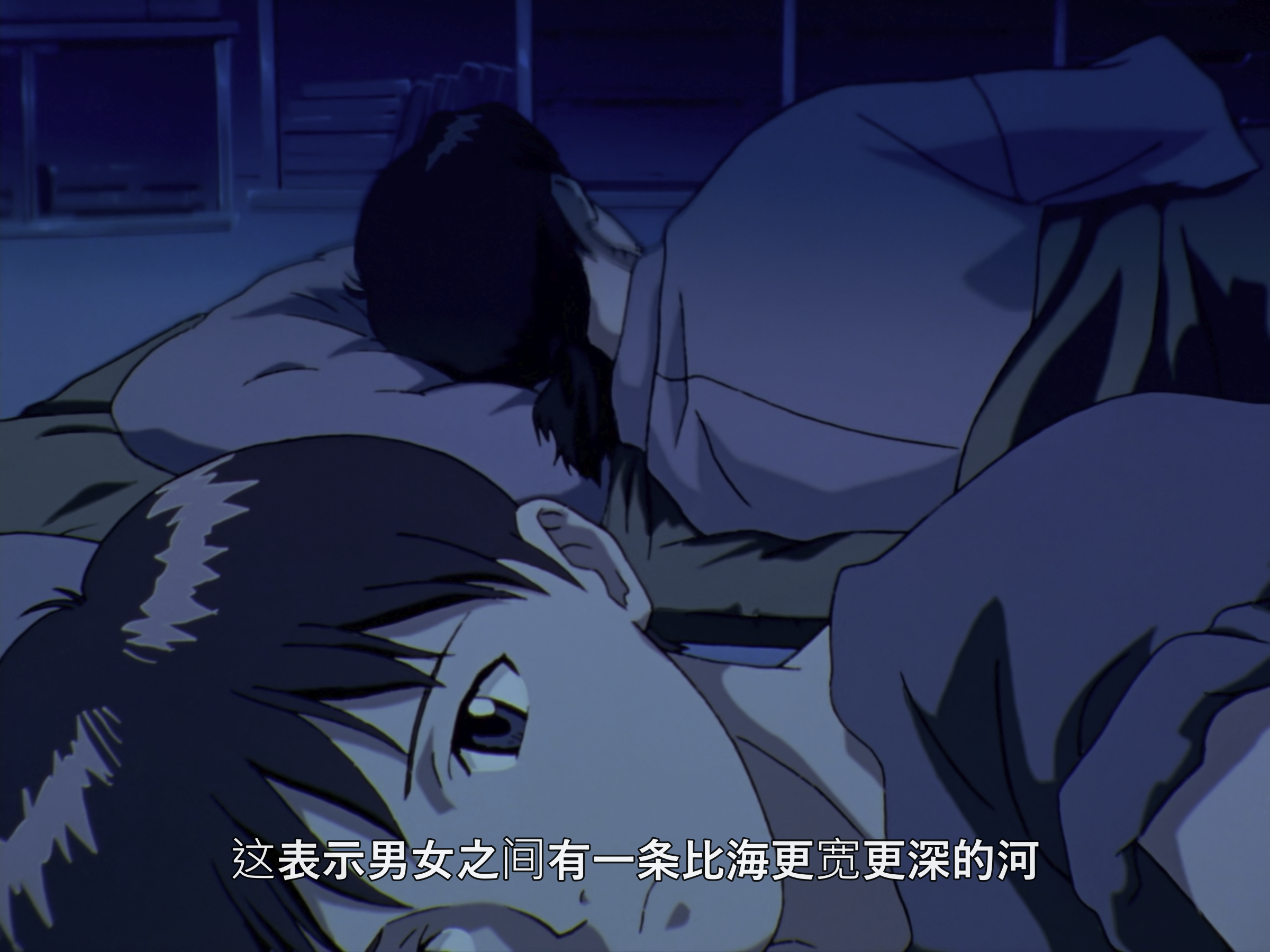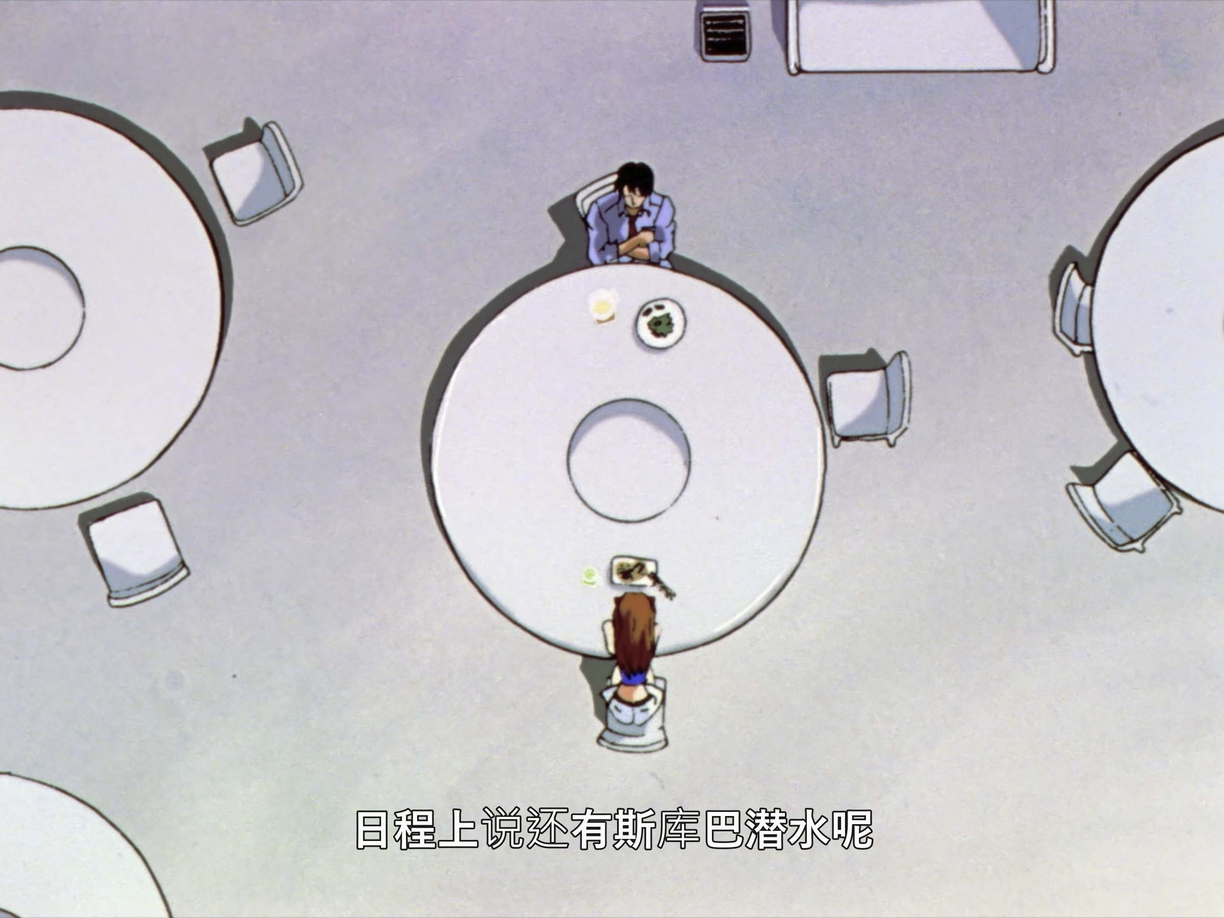 这里是真嗣憋气实在憋不住了然后主动退后了,明日香停顿了一下然后去了洗手间。