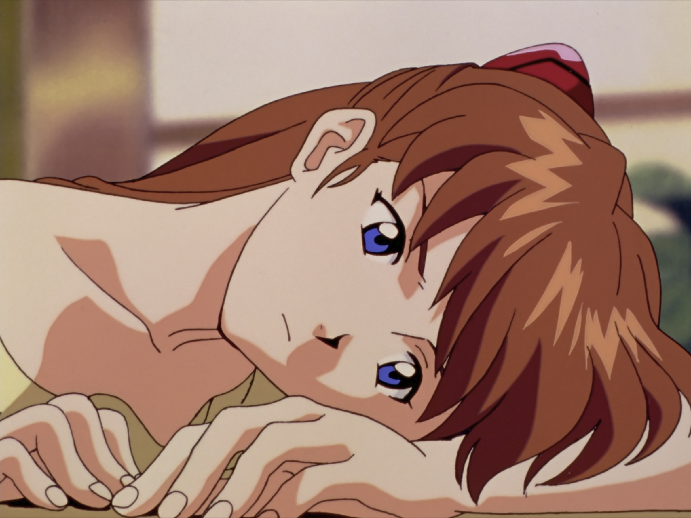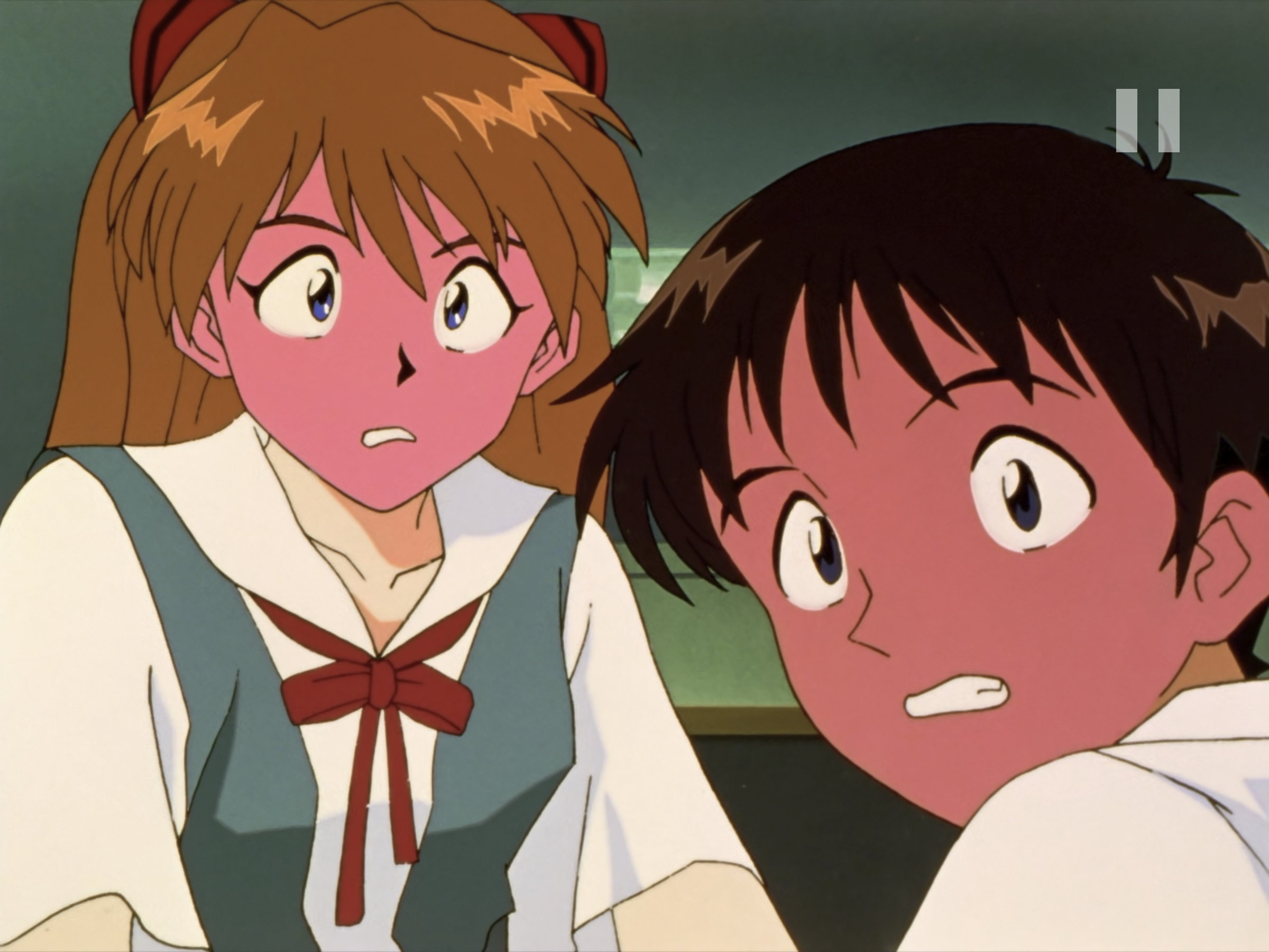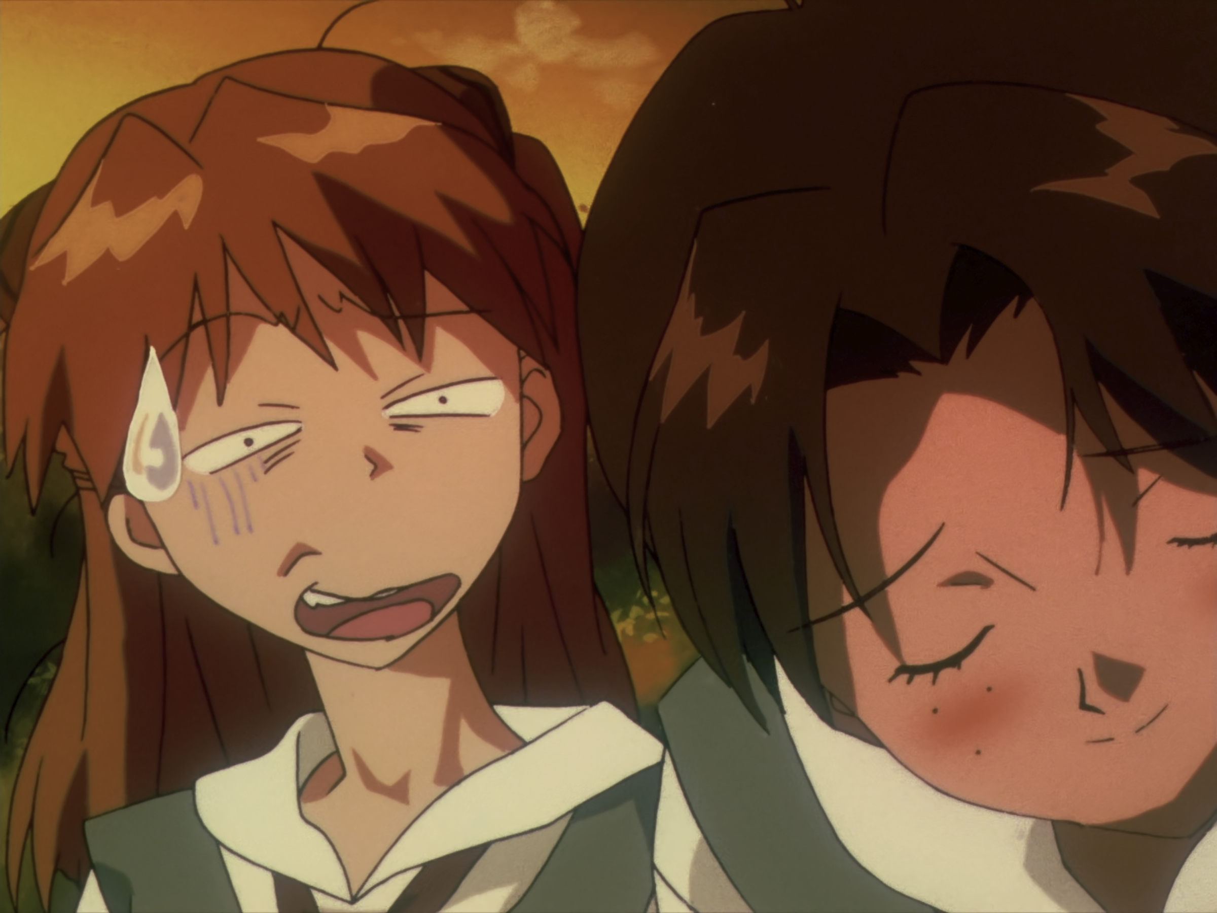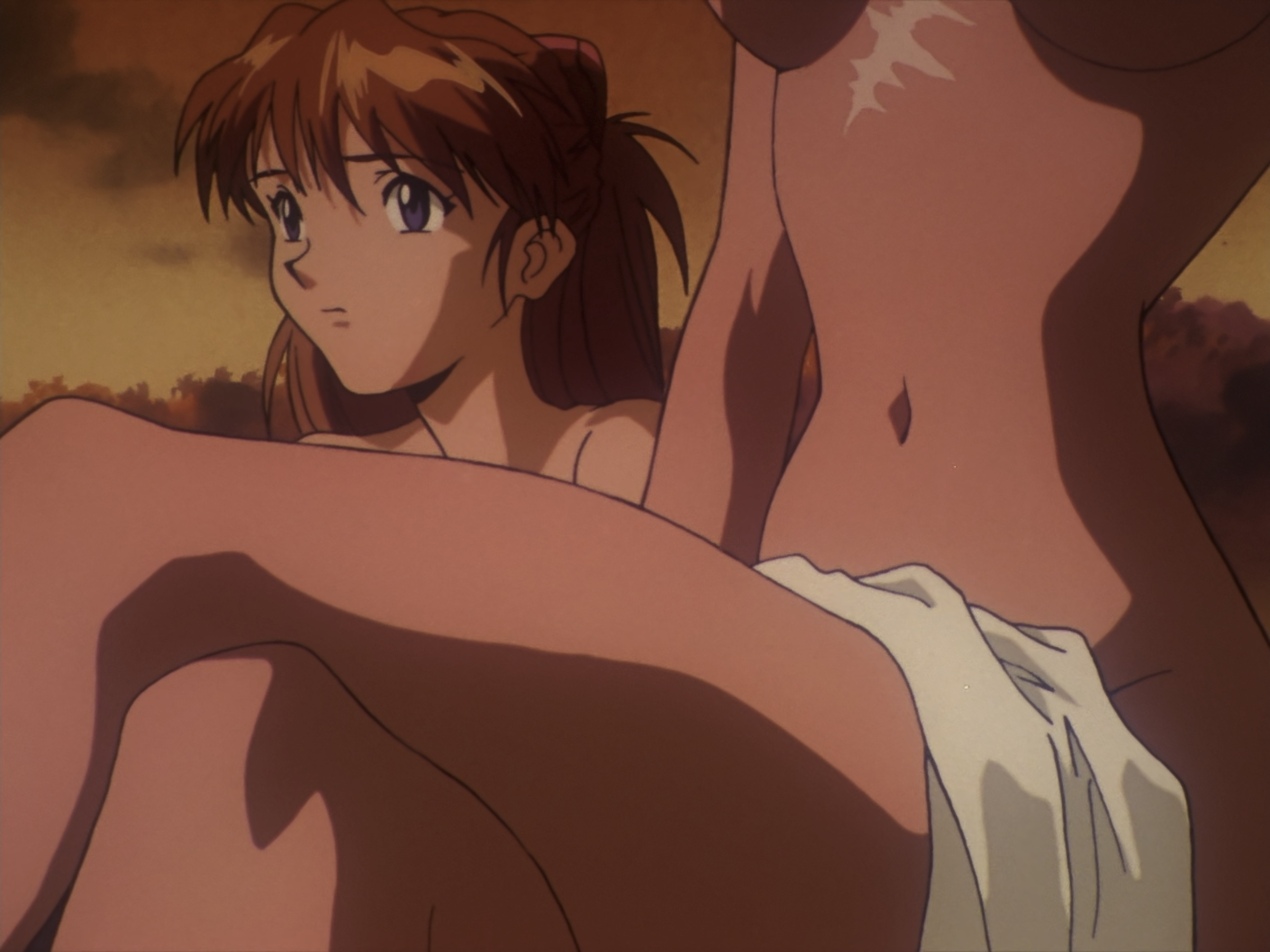 这里是真嗣憋气实在憋不住了然后主动退后了,明日香停顿了一下然后去了洗手间。