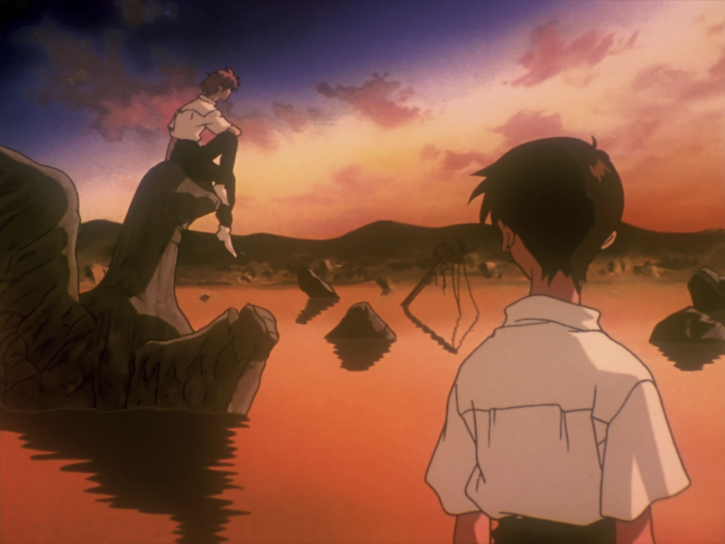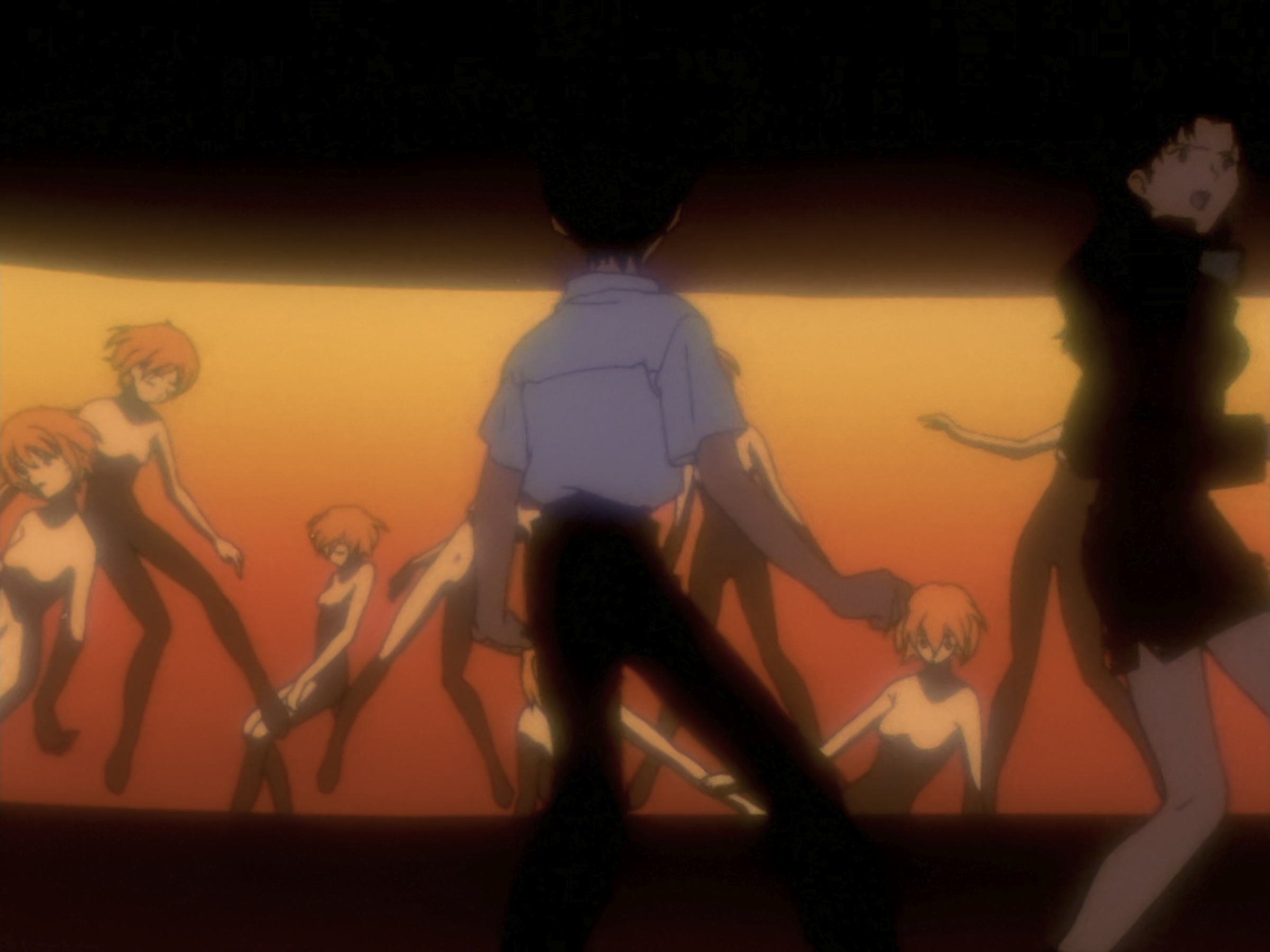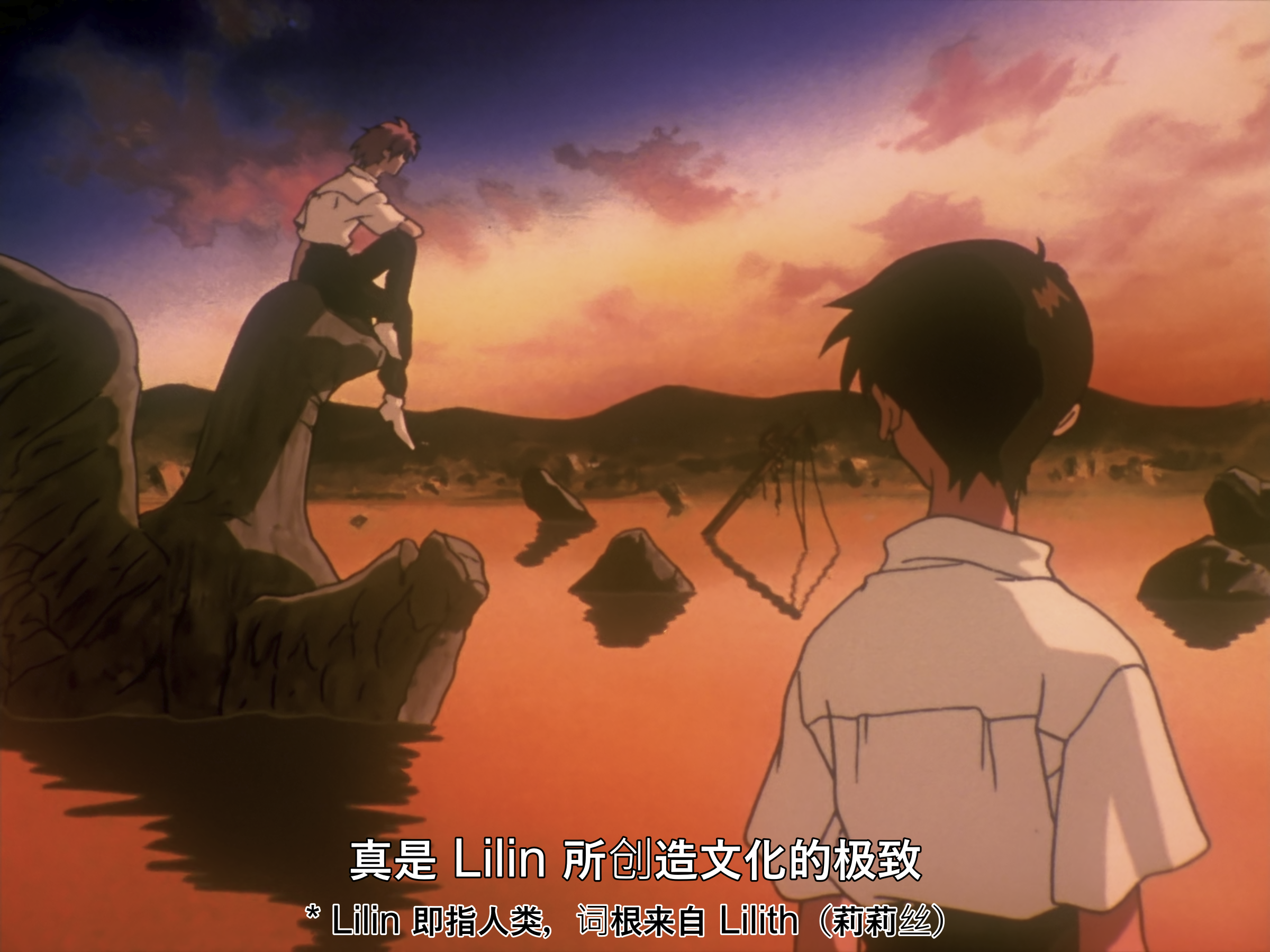 人在自己心中还有另一个自己,所谓的自己总是由两个人组成的:现实中被人看着的自己,和看着自己的另一个自己。每个人心中都有一个碇真嗣,你就是害怕别人心中的碇真嗣。我害怕被别人讨厌。其实你是害怕自己会受伤。错的人是谁呢?那是你自己认为什么都做不到吧。继续欺骗自己。大家都是这样啊,无论是谁都是这样活着的。那你就继续认为自己这样就好,否则你会活不下去的。因为要活下去的话,这世上痛苦的事情太多了。这是自我欺骗。不管你怎么说我都没关系。对讨厌的事情你不就是遮住眼睛,捂住耳朵活到现在吗?看吧,你又在逃避了。只把快乐的事情像念珠那样串在一起是没有办法活下去的。尤其是我。我找到了快乐的事情,找到快乐的事情然后只做那件事又有什么不对。