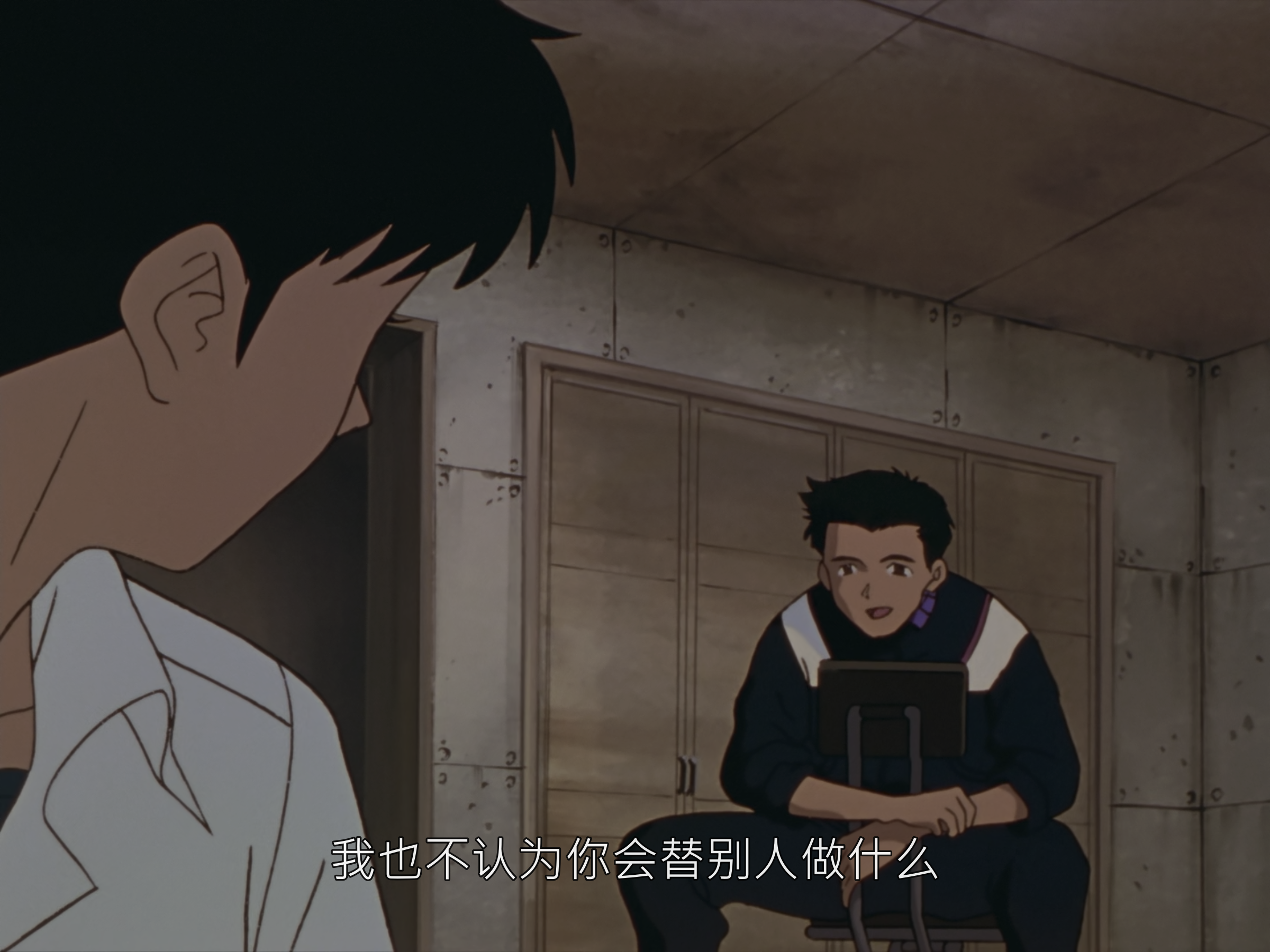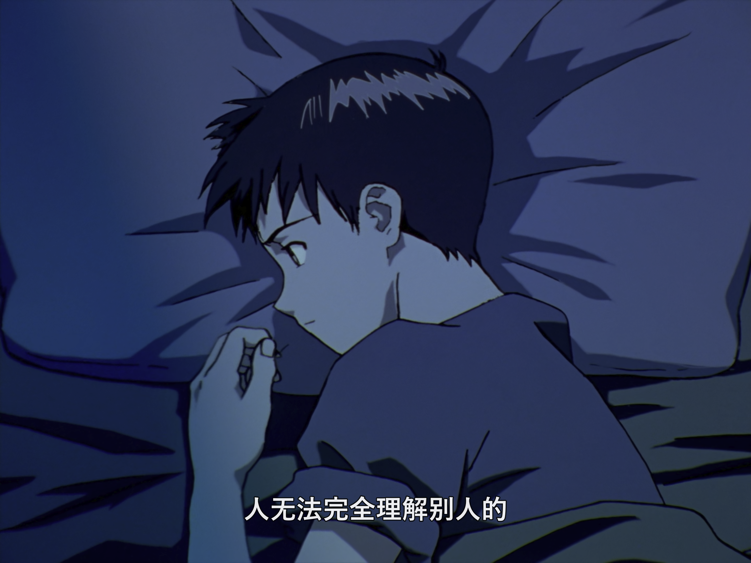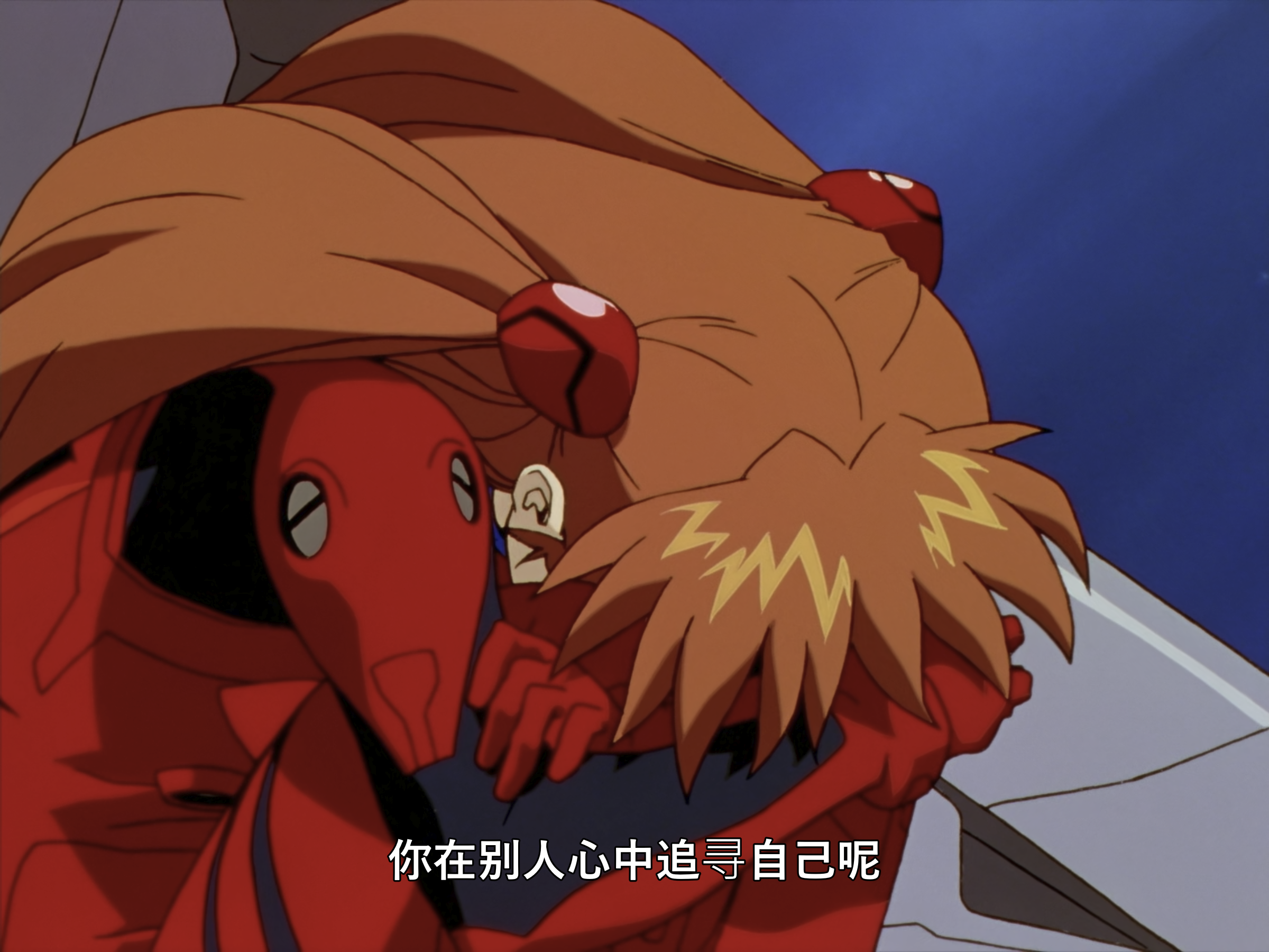 又钻牛角尖认为自己没价值了,以为抱着这种想法什么都不做便不会受伤吗,你就是藉由被别人称赞维持自己的存在啊,没有人愿意接受我,只是你自己这么深信吧。所以,我必须驾驶 EVA,那不过是你从一开始就深信自己没有价值吧,我不得不这么做,没这回事。