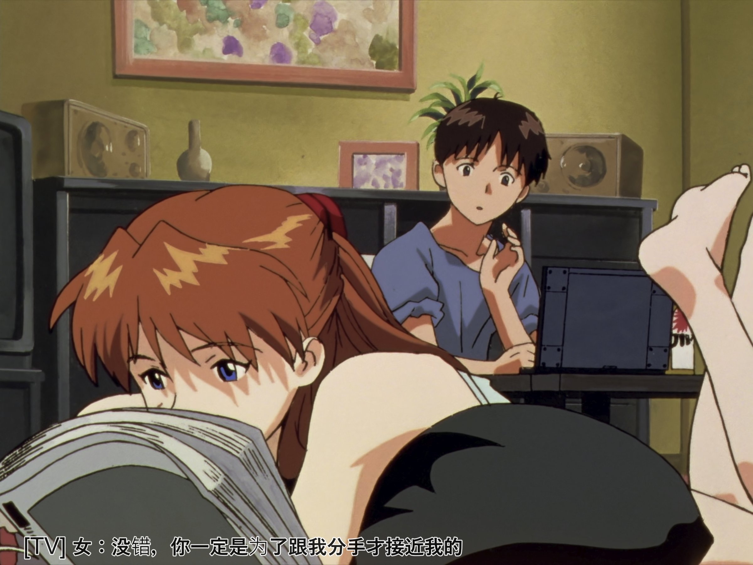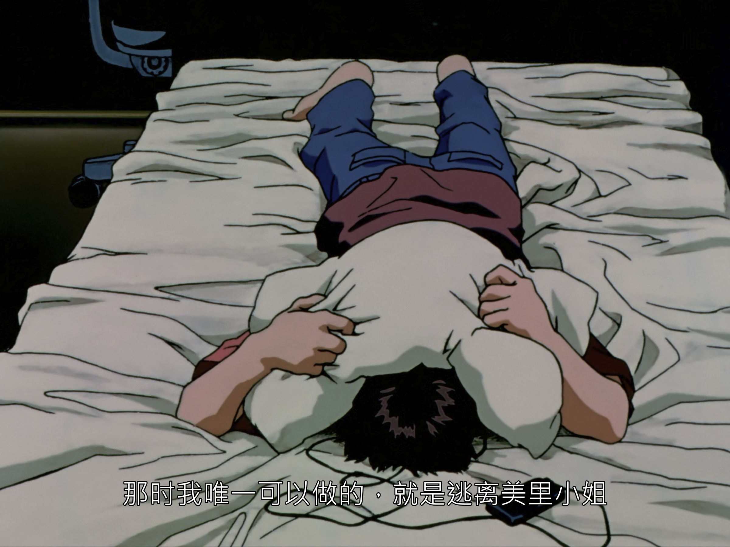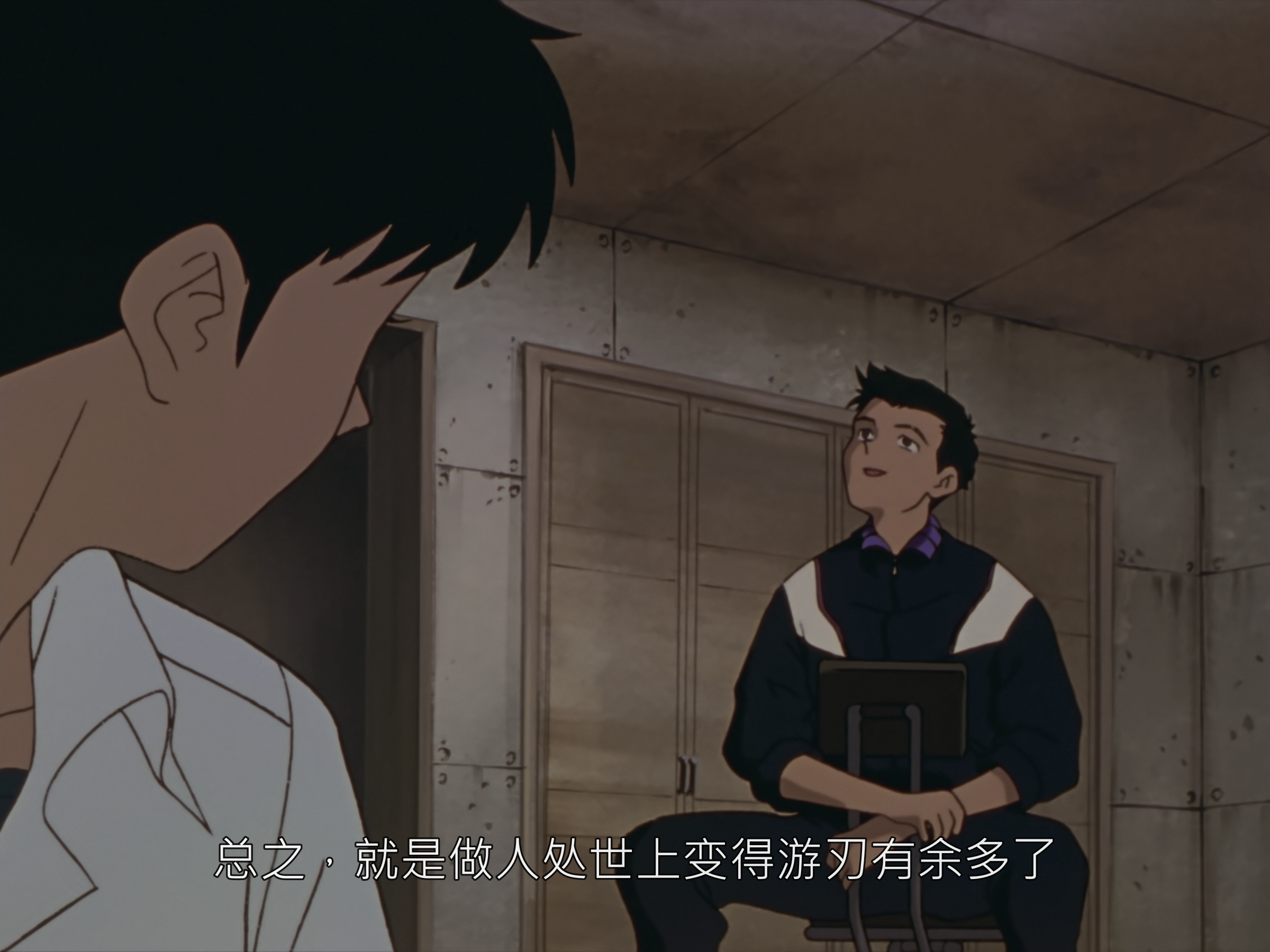 又钻牛角尖认为自己没价值了,以为抱着这种想法什么都不做便不会受伤吗,你就是藉由被别人称赞维持自己的存在啊,没有人愿意接受我,只是你自己这么深信吧。所以,我必须驾驶 EVA,那不过是你从一开始就深信自己没有价值吧,我不得不这么做,没这回事。