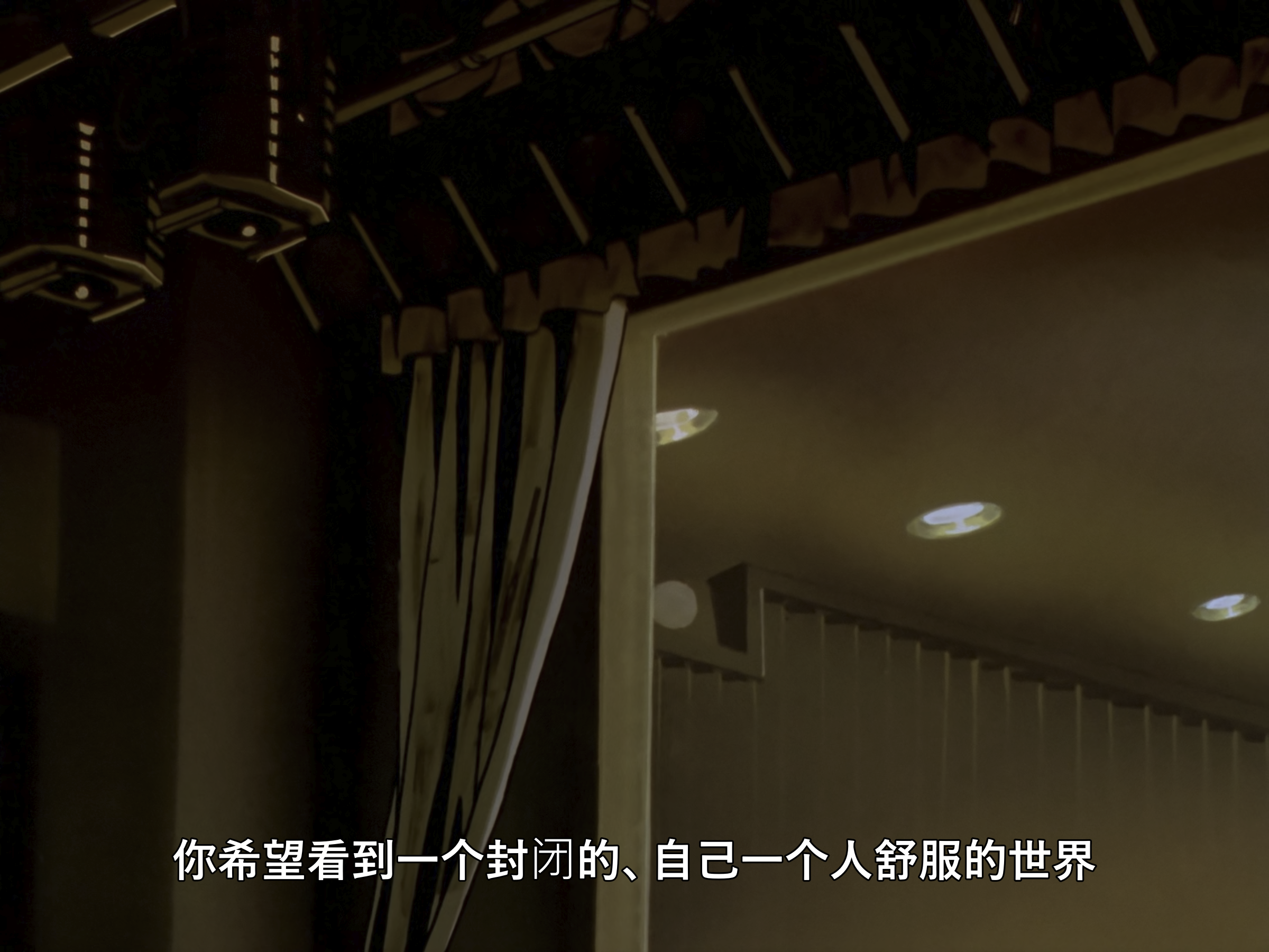 你希望看到一个封闭的、自己一个人舒服的世界。为了保护自己脆弱的心,为了保护自己的快乐,其结果无非就是如此,在封闭的空间里面,你一个人的世界里面,人无法活下去。可是你却希望世界,这个包围着自己的世界能封闭起来。你那颗希望排除不称心的事物,创造更孤立的世界的心,导致了这个平静于心的小世界,这个形式,也是结局之一。这是你自己所引导的,这个世界的终结。
