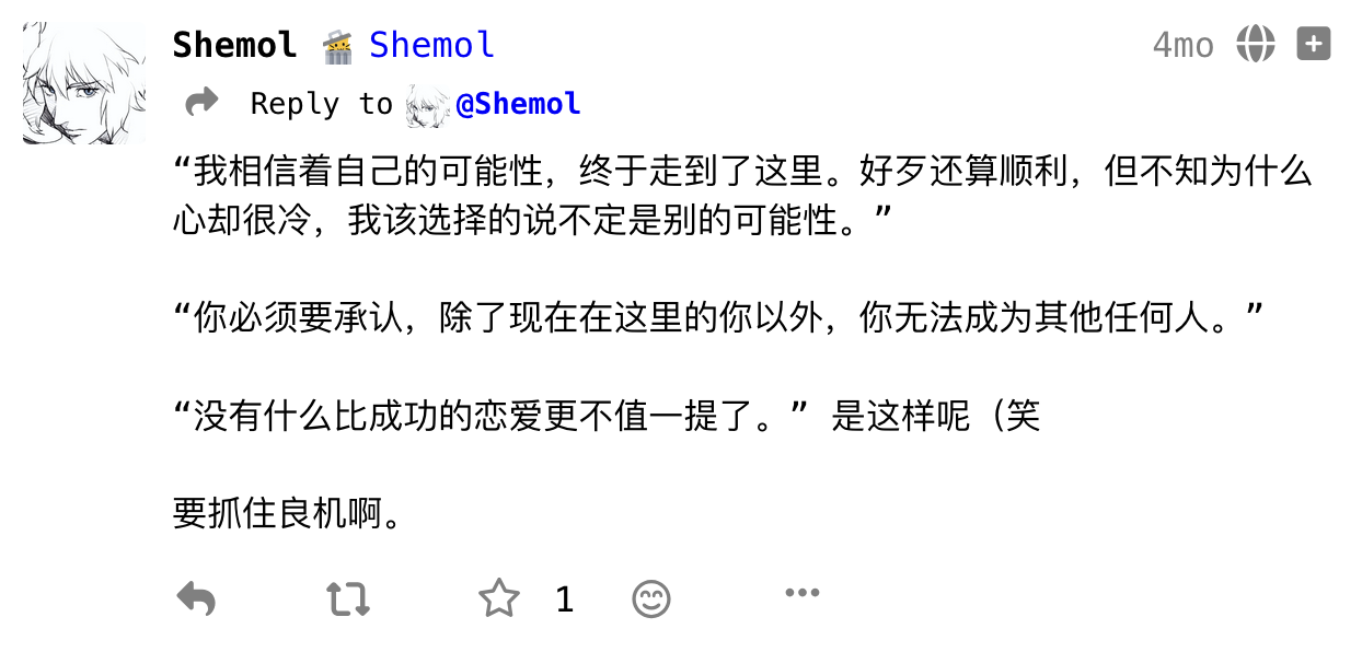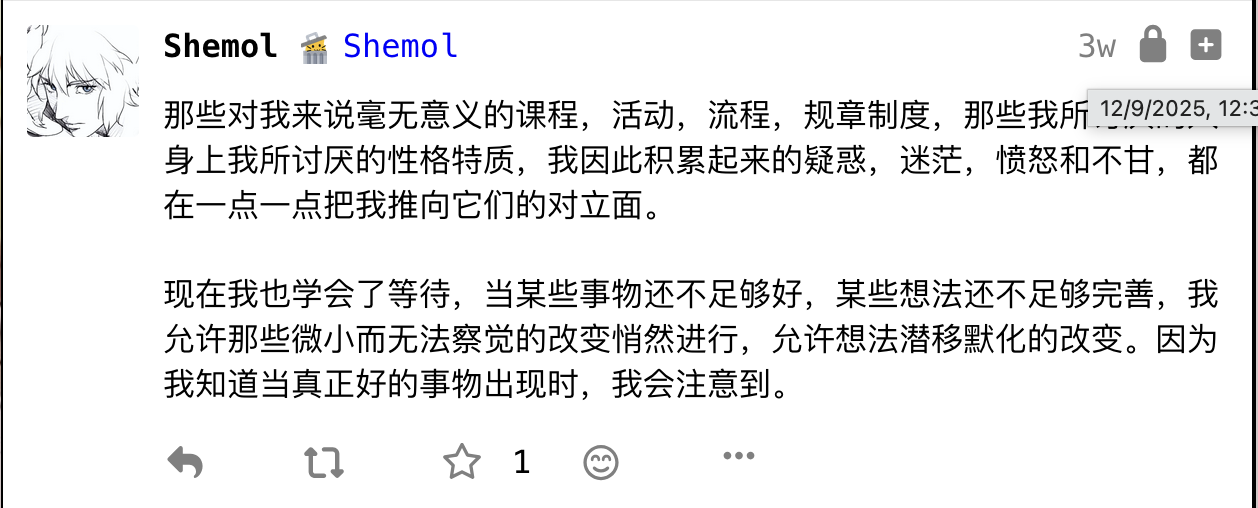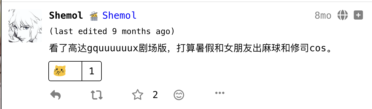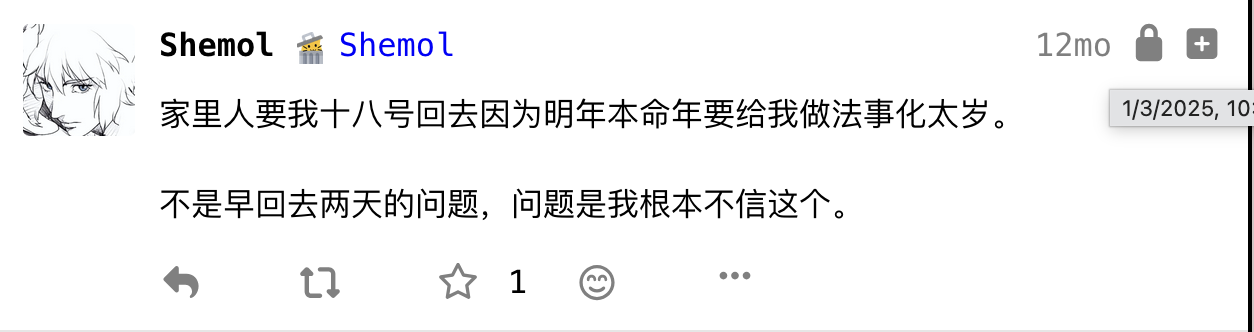 在fedi上找到自己25年初的帖子,把时间拉回到25年1月。24年年末看了很多动漫和漫画,星际牛仔、重看EVA、炎拳、重看电锯人、重看蓦然回首。25年年初我继续看电影看动漫。