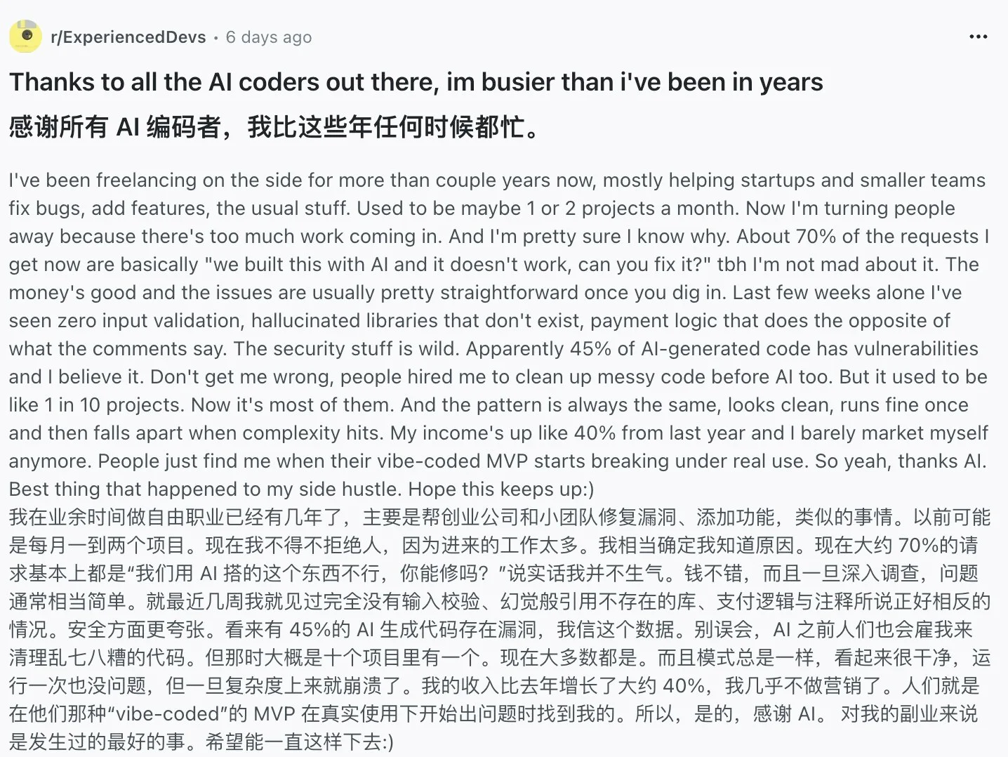 也可以看看vibe coding的另一面。