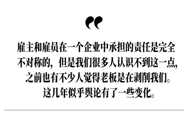 雇主和雇员在一个企业中承担的责任是完全不对称的,但是我们很多人认识不到这一点,之前也有不少人觉得老板是在剥削我们。这几年似乎舆论有了一些变化,不少企业都倒闭了,员工没工作了。所以现在大家都希望老板别辞职,老板一辞职,员工就没饭吃了。